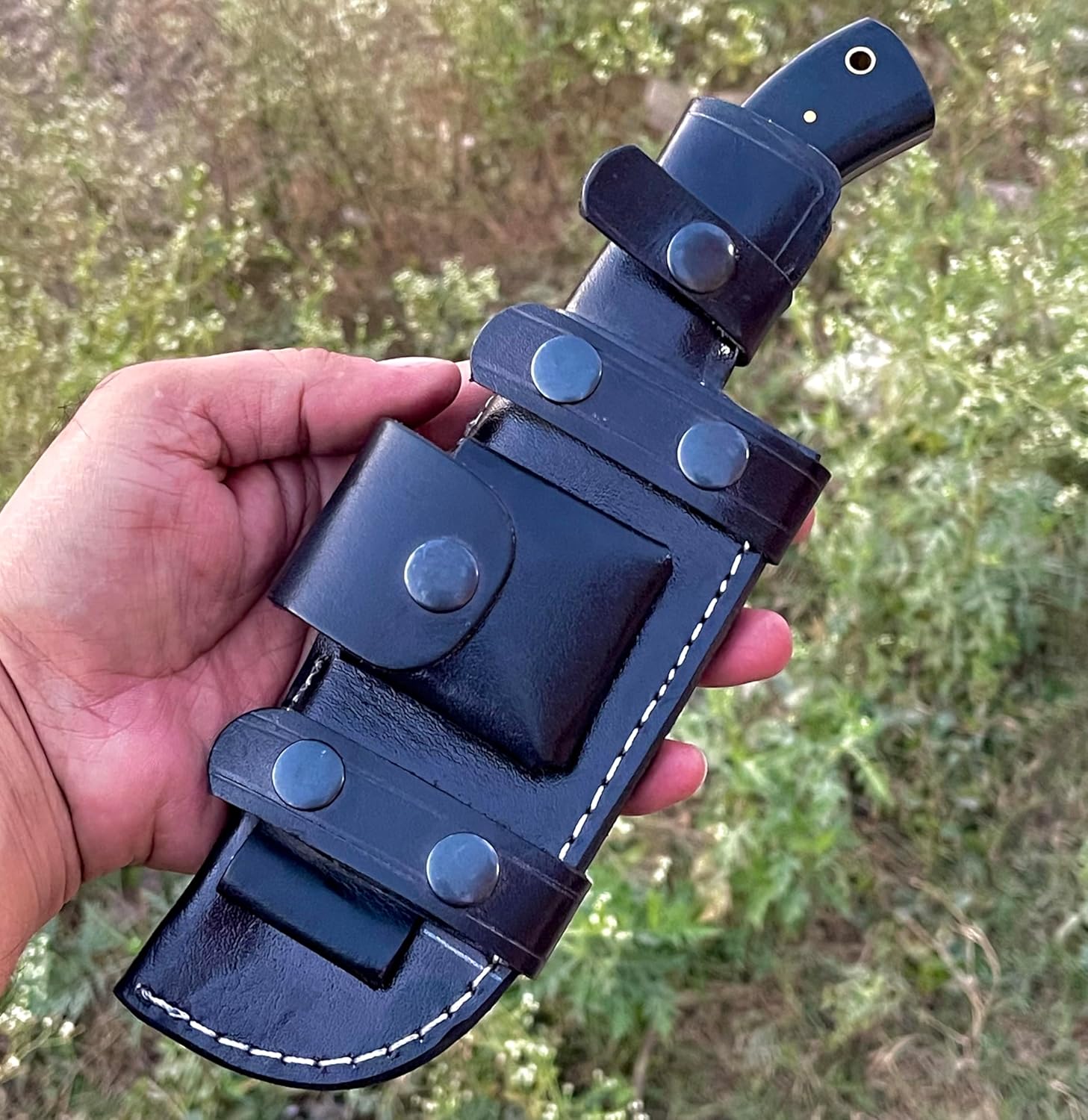 - SCOUT CARRY KNIFE WITH SHEATH: Tracker Scout knife sheath as a Full tang Bushcraft Survival Knife with Sheath is made with Solid D2 Steel with Bolster having superior durability and Long edge retention. Being a horizontal draw knife as well with other tracker knives. A fixed blade knife with quality hunting knife combine in knife with hostler also bushcraft knife with sheath. Horizontal belt knife with sheath is handmade knives fixed blade. Hunting knife 10 is super sharp hunting knife.