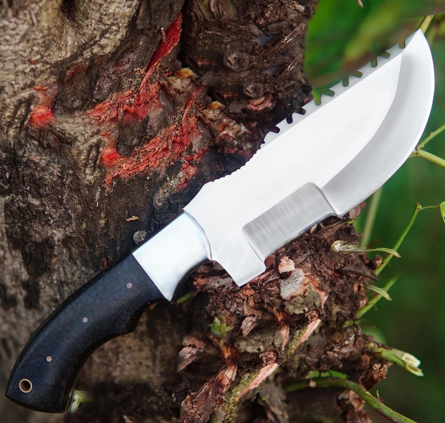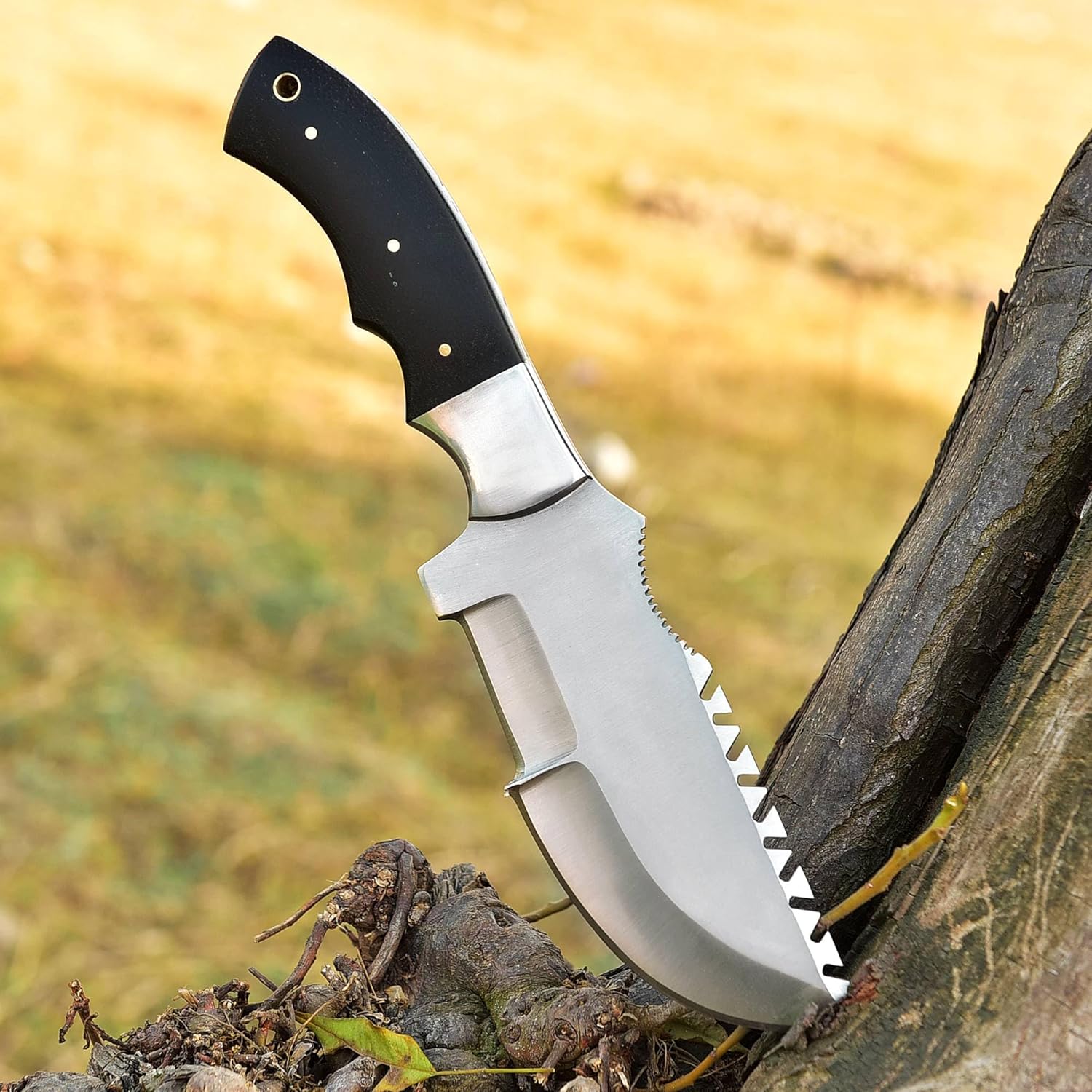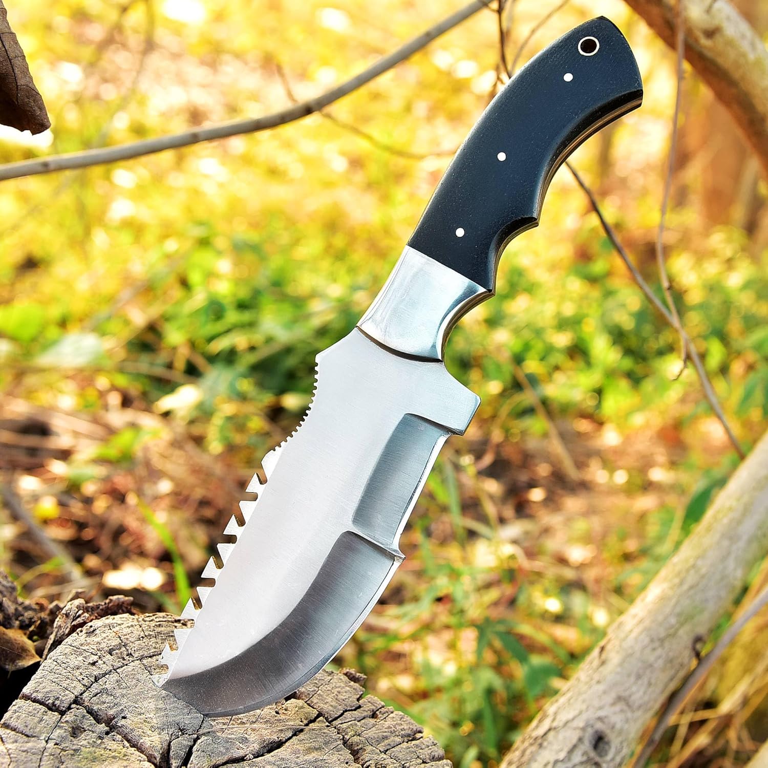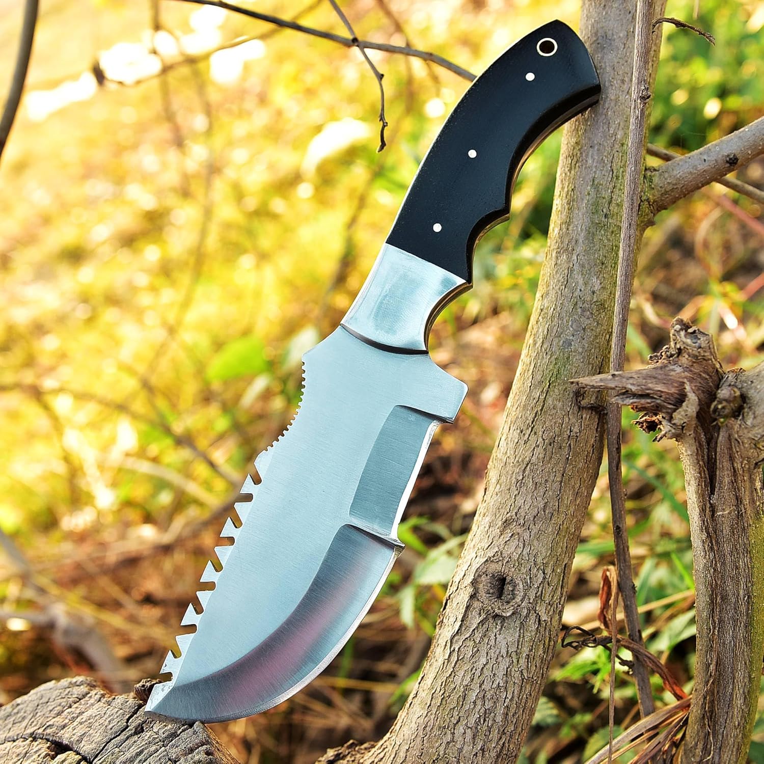 Hunting Knife with Sheath is often used for a wide range of Tasks in the Wilderness, from Preparing Food to building Shelters and making Tools. The Tracker Knife is a popular choice for Bushcraft due to its Versatility and Durability. The design of the Blade and Handle make it well-suited for a wide range of Bushcraft tasks, from Chopping and Splitting wood to Carving.