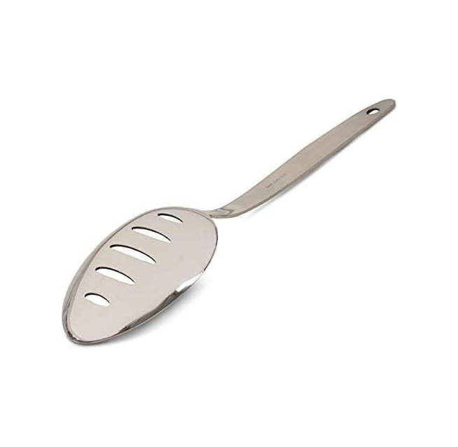 - CLASSIC DESIGN AND MEASUREMENTS: This Classic Design of Slotted Spoon will match all your Metal Kitchen Utensils like salad tongs. It is 9″ Long Cooking Spoons Silverware Holds 2.5″ wide Tasting Spoons (about 40 ml) Small Spoon.