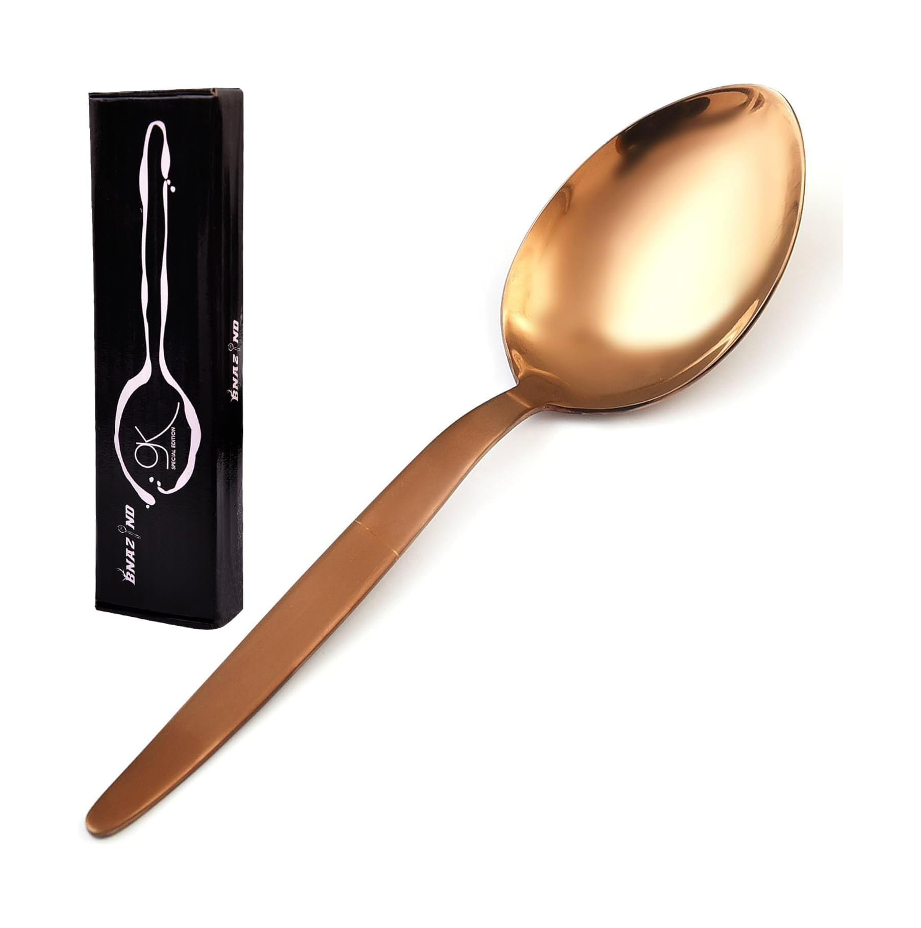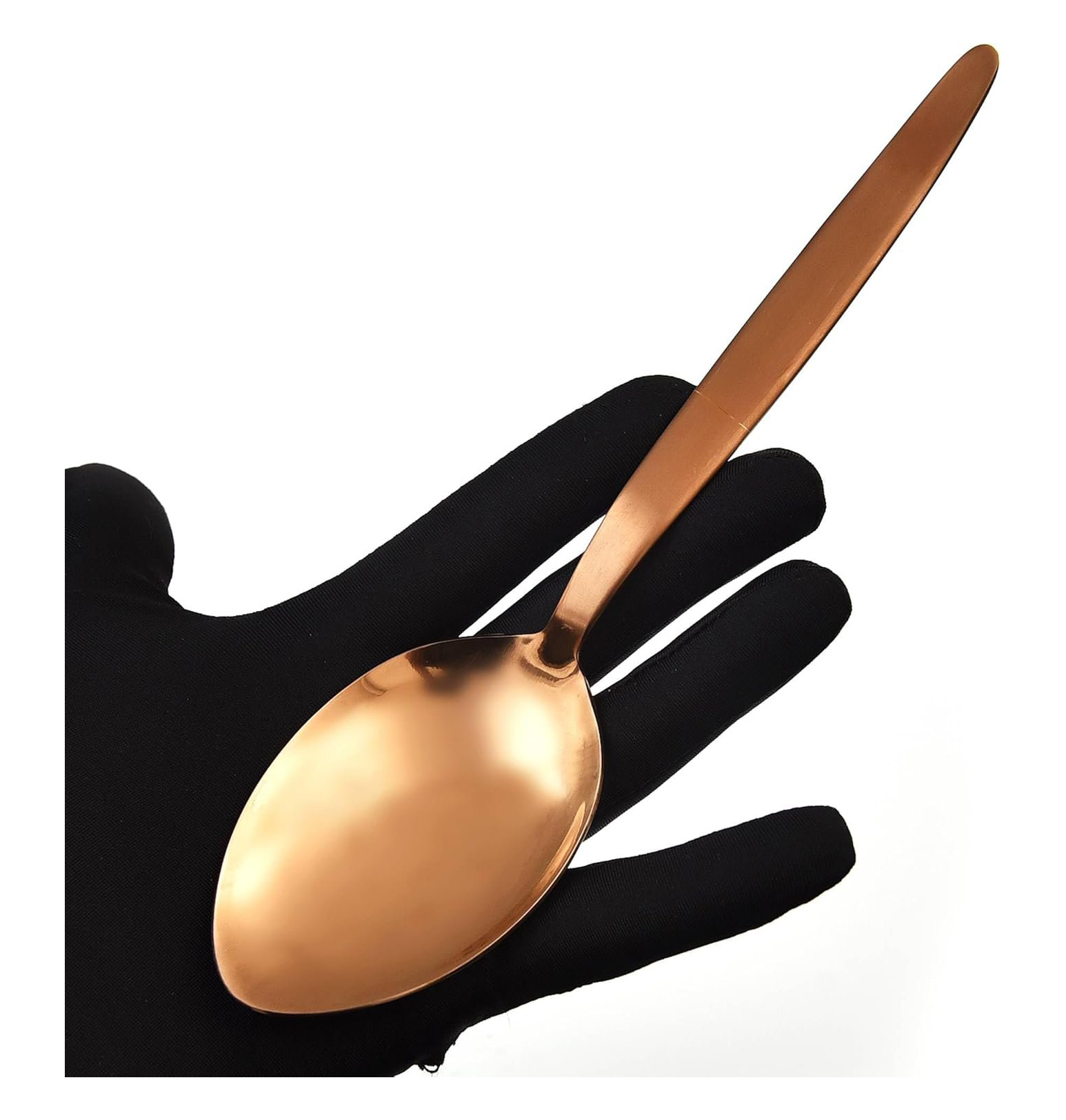 - Luxury Gold Titanium Plating: Big Spoon made of High Quality Stainless Steel, Strong Anti-Rust, Lead free and Nikle free Healthy for your everyday use. Process of Rose Gold Titanium Plating, Looks Beautiful and Luxury.