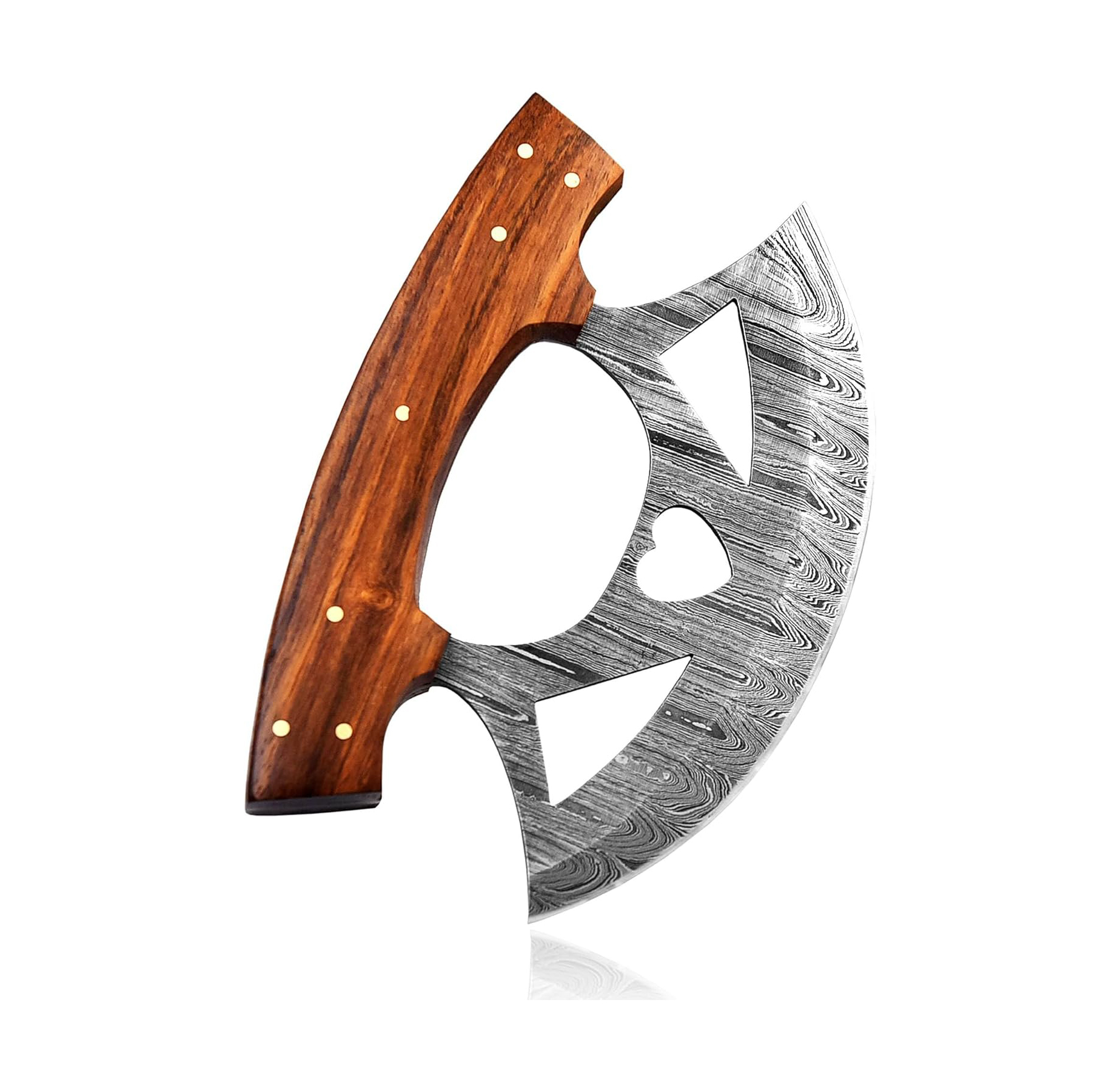 Made of the highest grade Damascus steel, with an ergonomic easy-grip Rose wood handle, this rocker knife is suitable for all levels, from professional chefs to hobbyists and beginners.