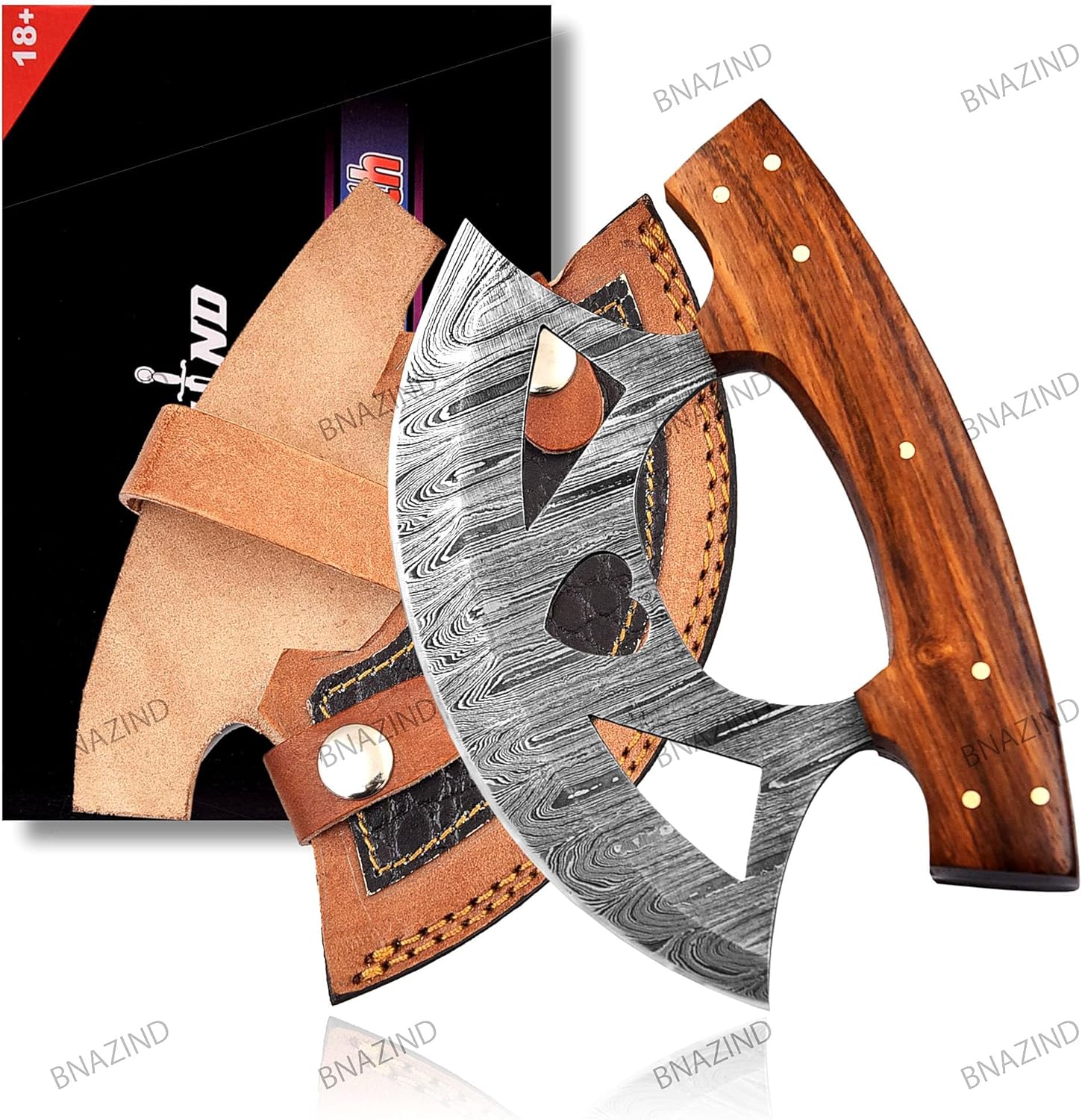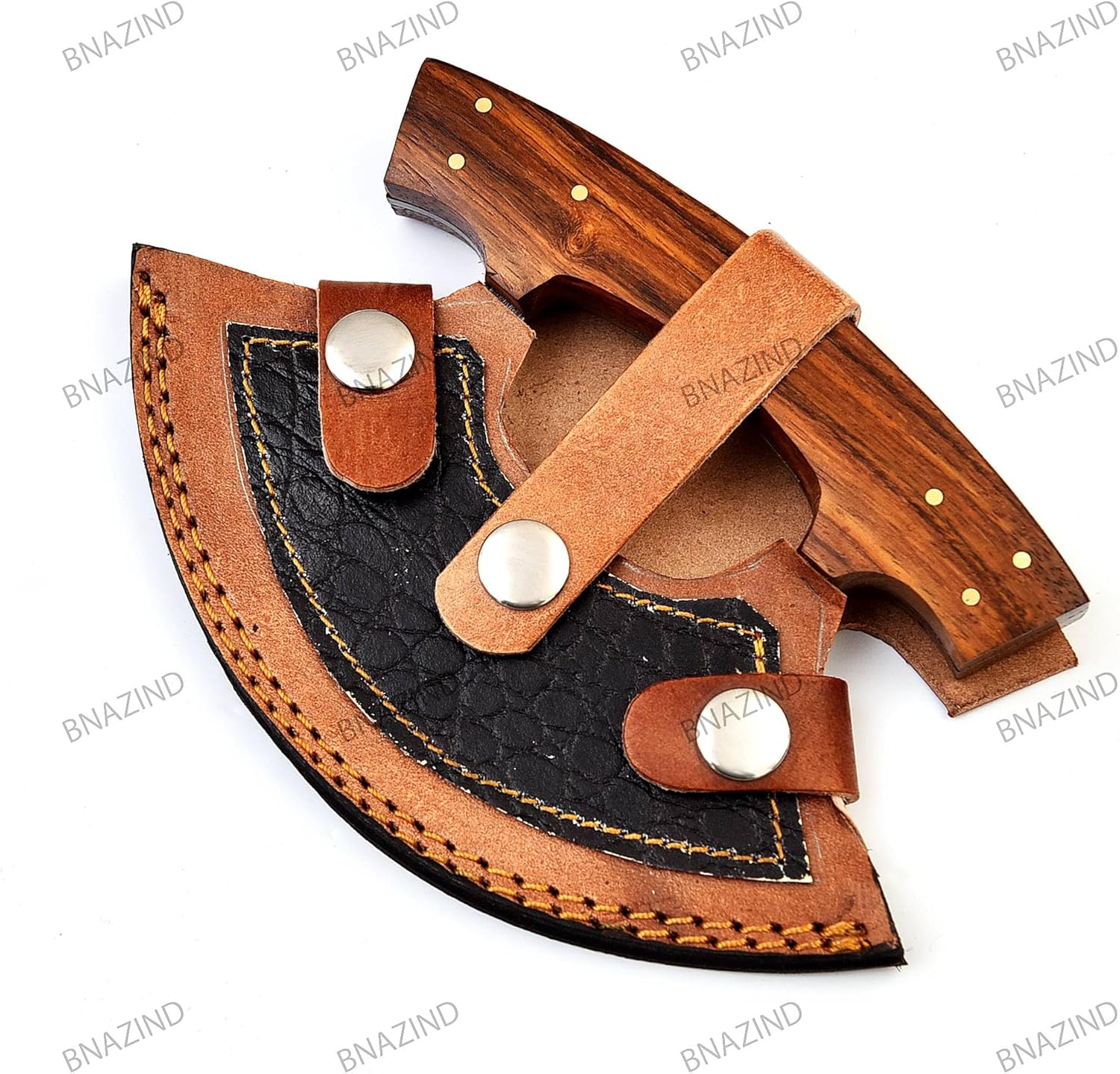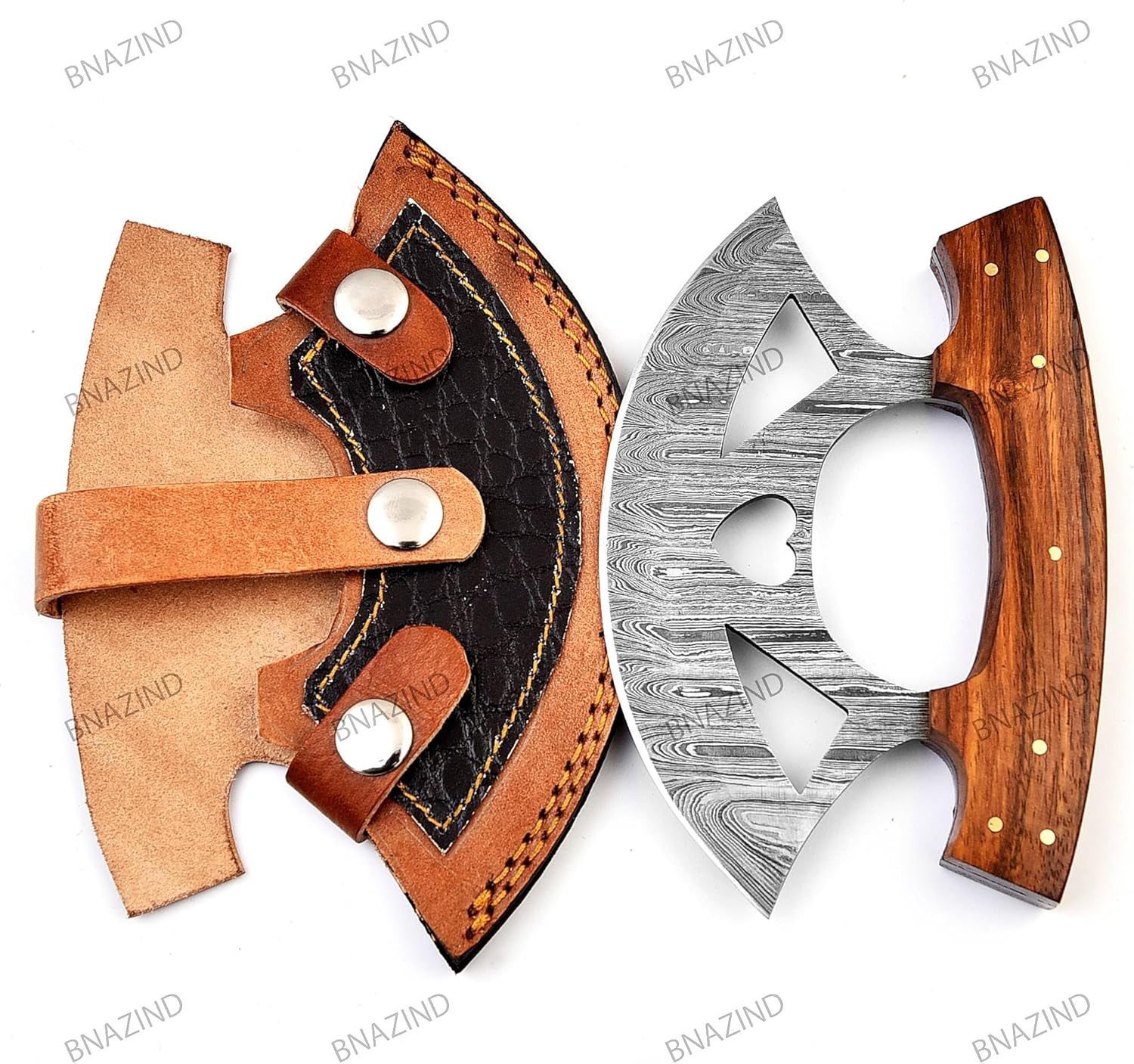 The BNAZIND ulu knife was designed having in mind the perfect combination between functionality and durability, allowing you to easily slice pizzas, dice veggies, nuts, herbs or meats while adding a beautiful vintage touch to your kitchen decor.