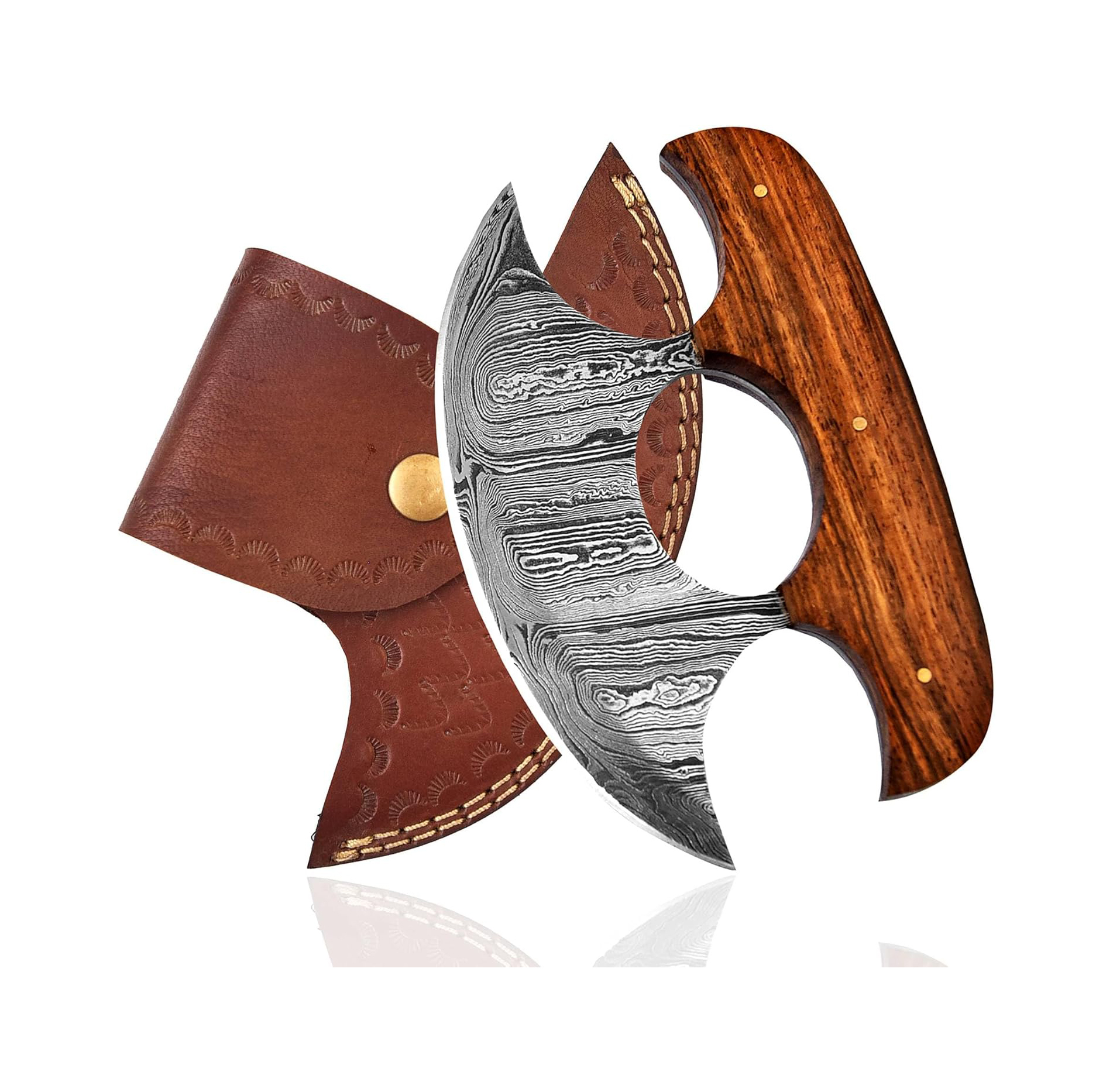 - DAMASCUS ULU KNIFE: The Handmade Alaskan ulu knife is a Curved Knife perfectly designed with sharp edges like Crescent Shaped Blade in wooden Handle ideally used as chop knife. The traditional design of chopper knife is incited by Yupik and Inuit people for centuries.