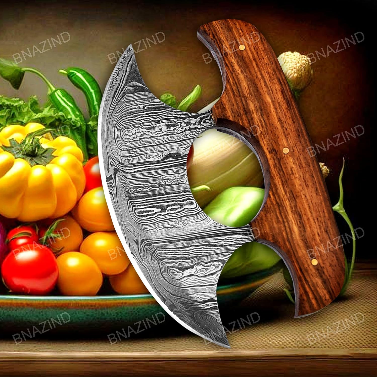 - ADAPTIVE KITCHEN EQUIPMENT: Our Ulu Knives are made with premium quality Damascus steel is used to ensure the strength and durability. Chopper knives are the knives of Alaska designed by skilled artisans with perfection. Rocker knife is a one-handed gadgets.