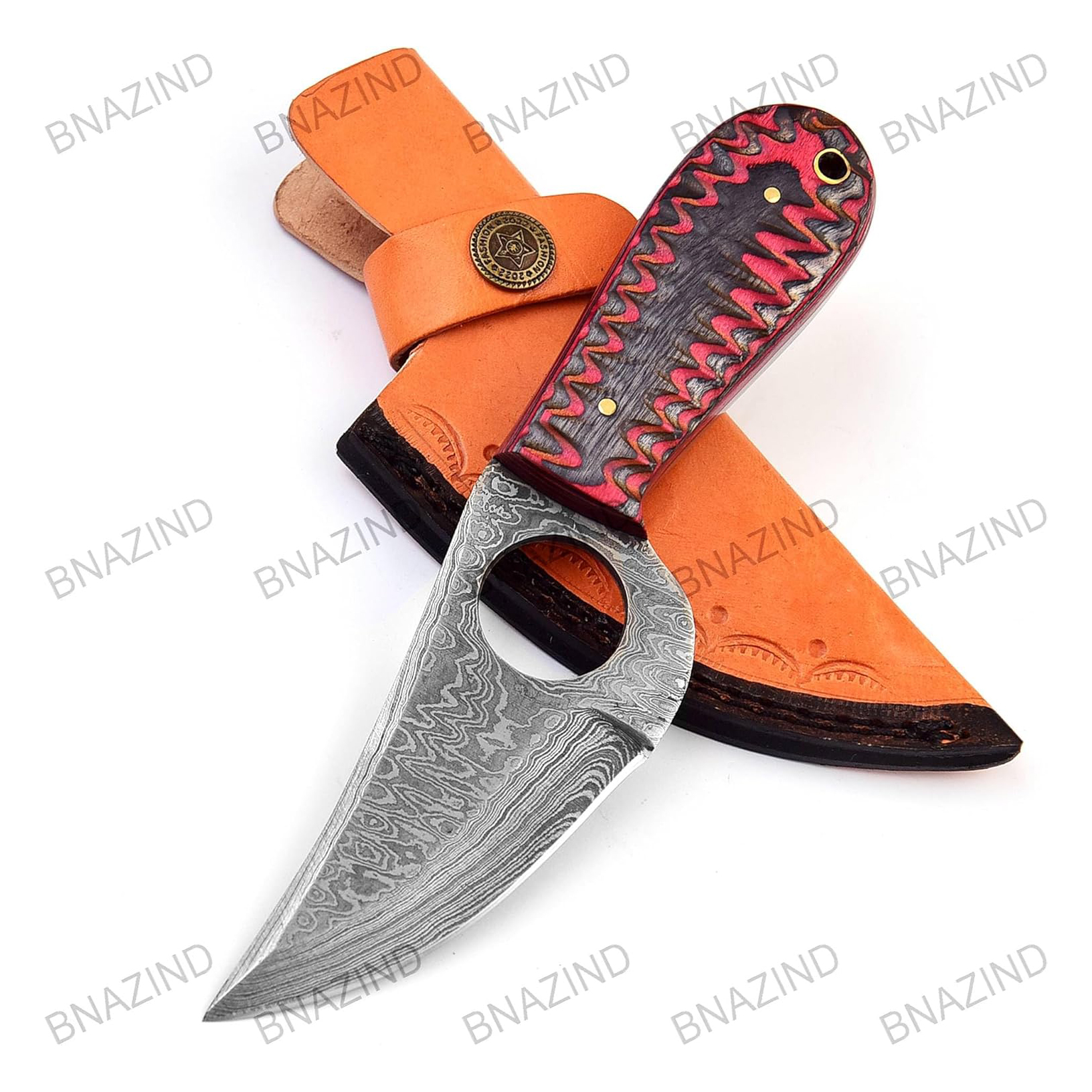 - STUNNING LEATHER SHEATH: This Damascus Hunting Knife is not a Pocket Knife. This Fixed Blade Hunting Knife with Sheath is a Beauty to Behold. Damascus Hunting Knife with Holster and Belt Loop Ensures that it is well protected like Tactical Knife with Holster.