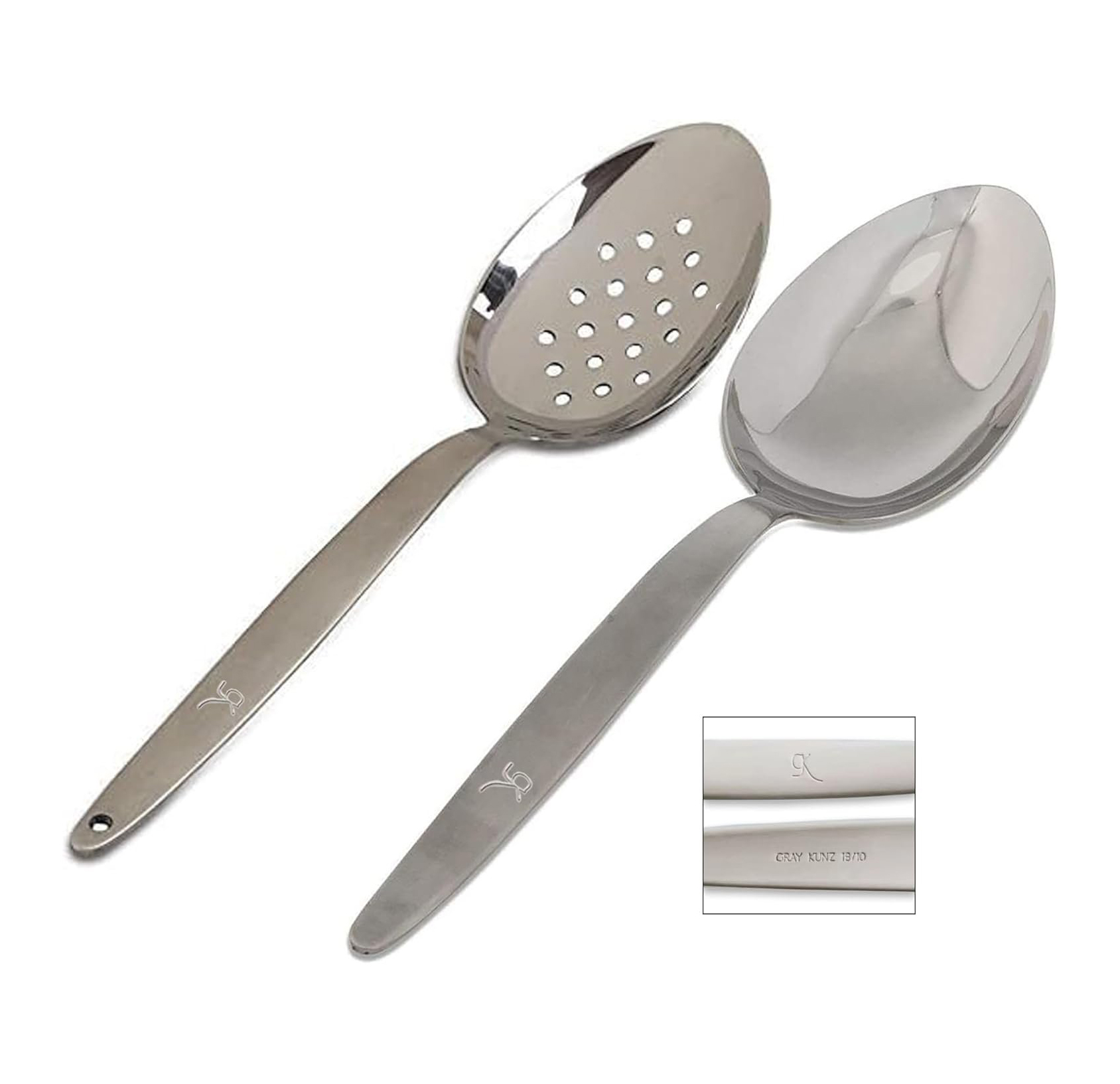 - ERGONOMIC DESIGN and MEASUREMENTS: Kunz Classic Chef Spoon features an ergonomic design, ensuring a comfortable grip and ease of use for both amateur and professional chefs. It is 9 Inch Long Cooking Spoon Silverware Holds 2.5 Inch wide Tasting Spoons (about 40 ml).