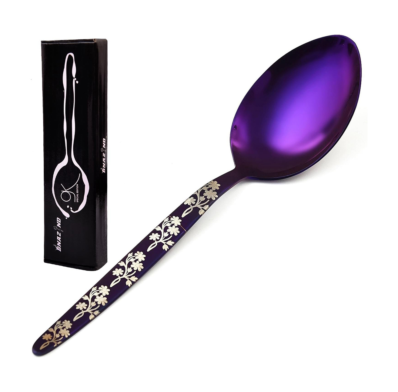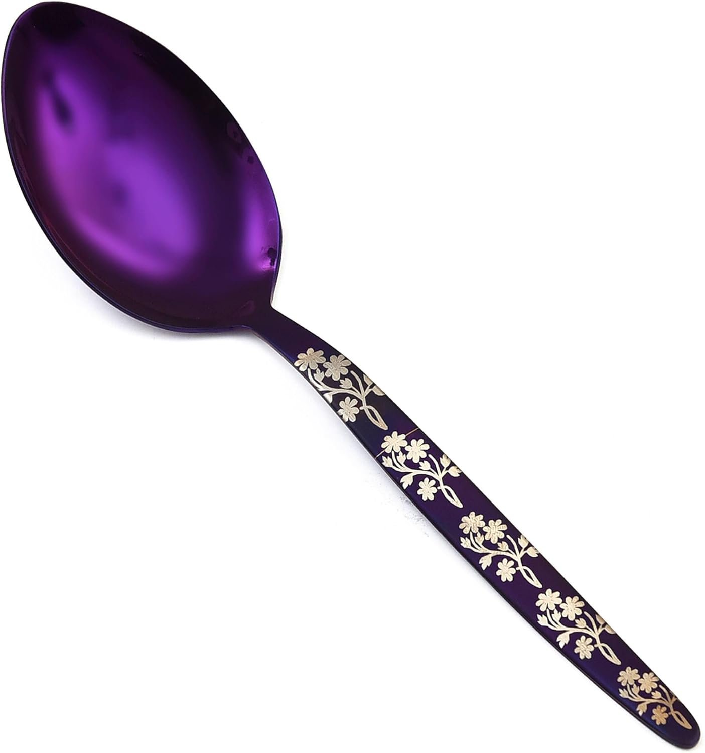- Luxury Gold Titanium Plating: Big Spoon made of High Quality Stainless Steel, Strong Anti-Rust, Lead free and Nikle free Healthy for your everyday use. Process of Purple Titanium Plating, Looks Beautiful and Luxury.