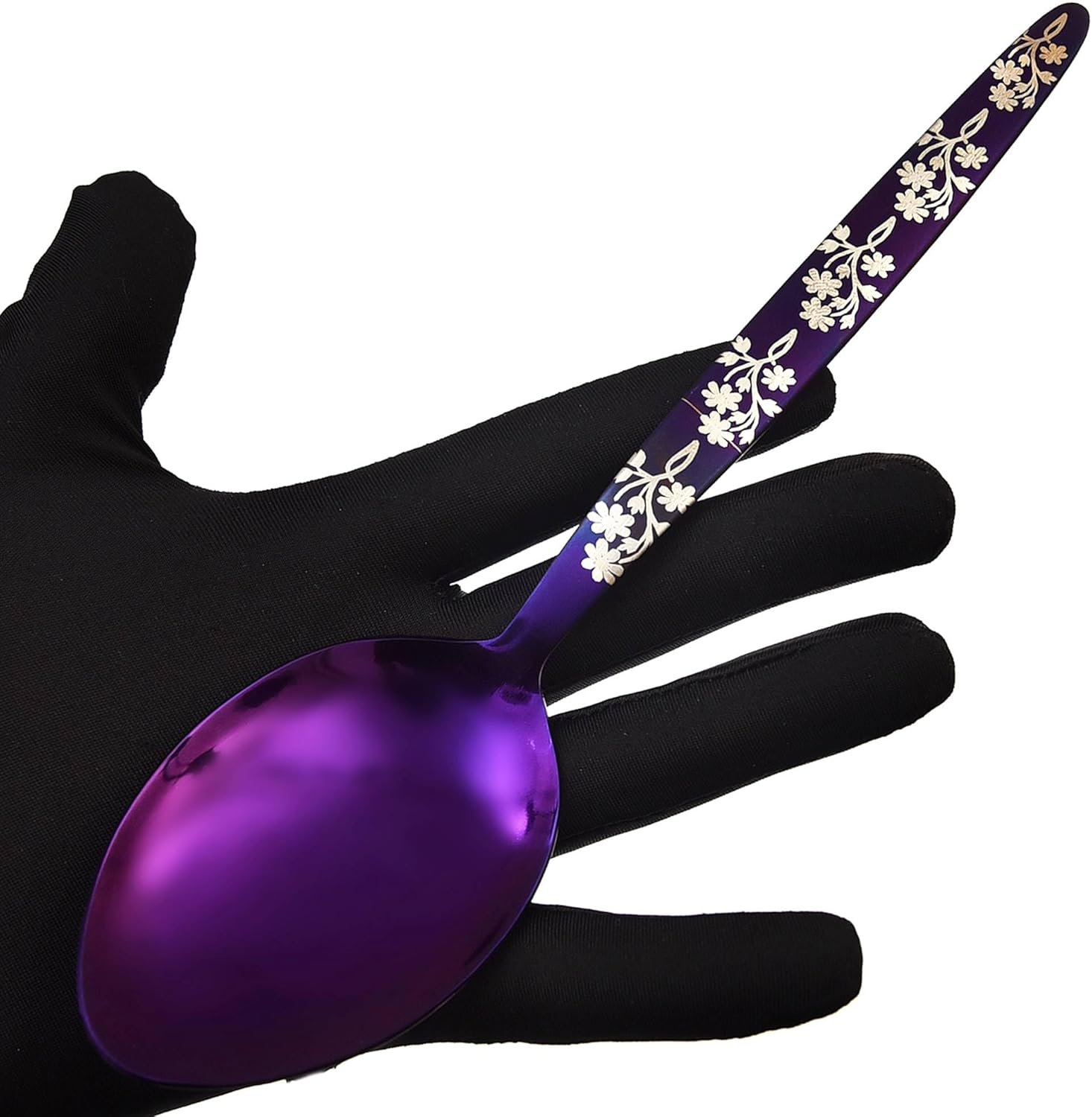- MIRROR POLISH FINISH: This Titanium Purple Serving Spoons are Mirror finish instead of other Brand with Dull Polish finish. Raise The Standard in your Kitchen by adding the Unique Effects Stainless Steel Mirror Finish Polished Utensil Set to your Kitchen Spoon.