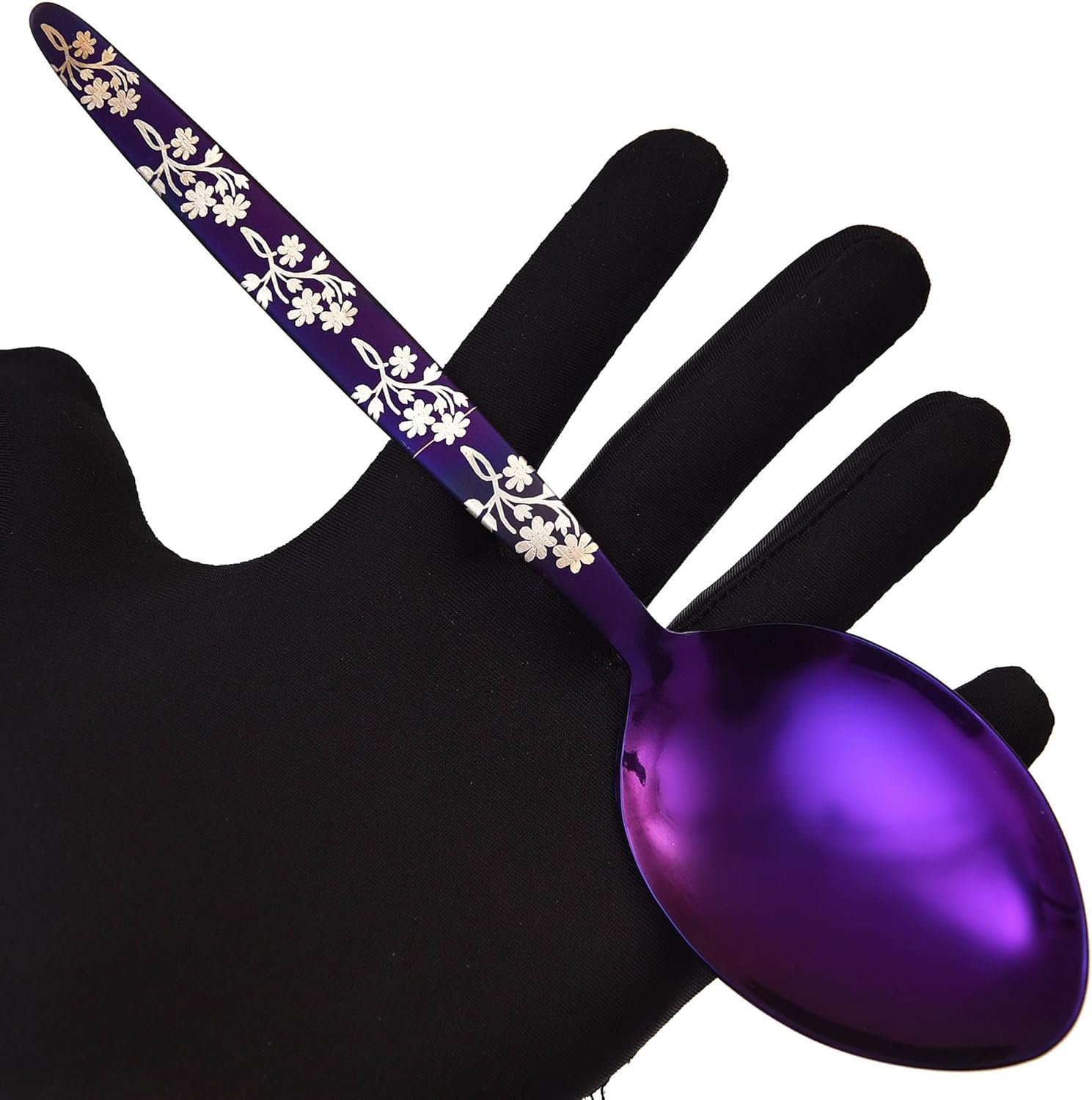 - HIGH QUALITY STAINLESS STEEL: This Kunz Spoons Purple Plated is made High Quality, Strong Rust Resistant and Lead Free. This Utensils Set is non-Magnetic instead of other Brand Catches Magnetic. This Material is Food Grade, Healthy for daily use.