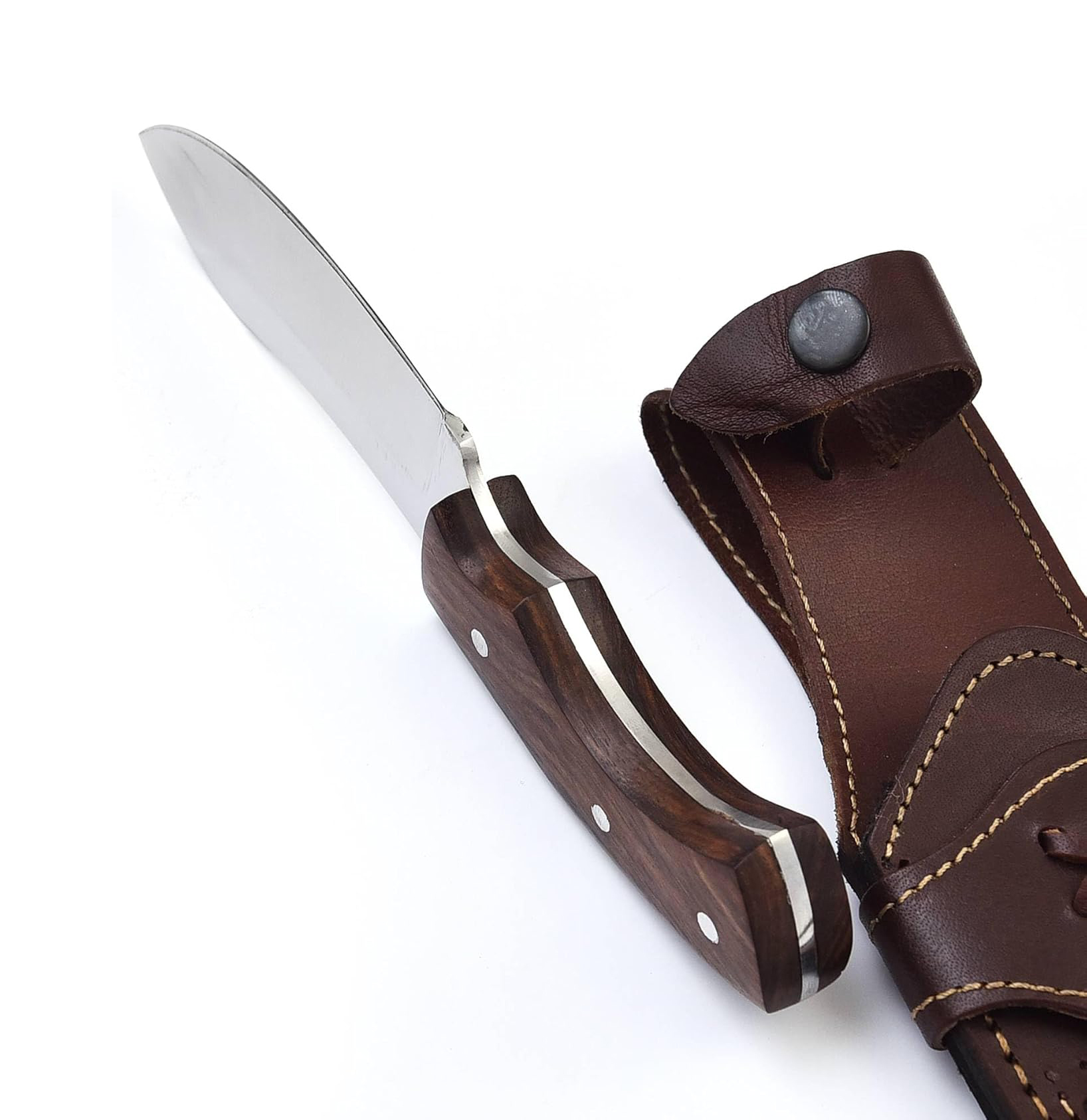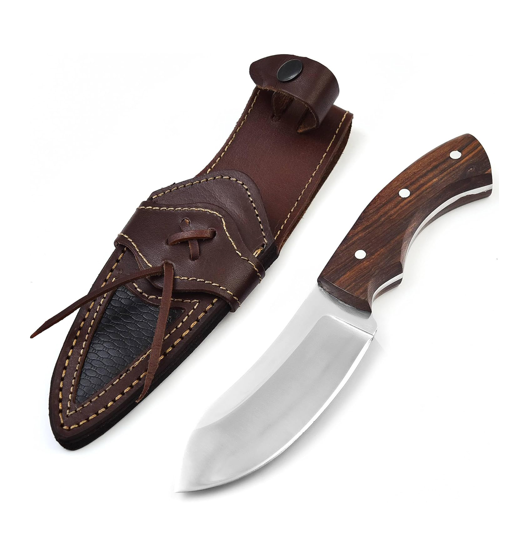 - STUNNING LEATHER SHEATH: This Bushcraft Hunting Knife is not a Pocket Knife. This Fixed Blade Hunting Knife with Sheath is a Beauty to Behold. Damascus Hunting Knife with Holster and Belt Loop Ensures that it is well Protected like Tactical Knife with Holster.
